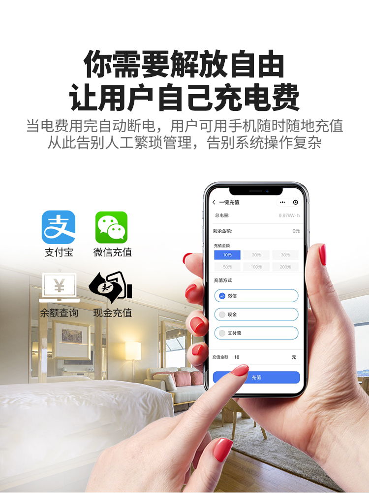 傳統(tǒng)的用電收費(fèi)方式需要統(tǒng)一抄表,然后回來(lái)計(jì)算電費(fèi),再上門收費(fèi)。勞動(dòng)力大,耗時(shí)多,收費(fèi)難,有的業(yè)主古意拖欠電費(fèi),或上門經(jīng)常碰到業(yè)主。以及后來(lái)更為科學(xué)一些的插卡式電表也存在諸多缺點(diǎn):業(yè)主的購(gòu)電卡易丟失,充值需要到物業(yè)管理處,需要配備專門的充值電費(fèi)的管理人員。